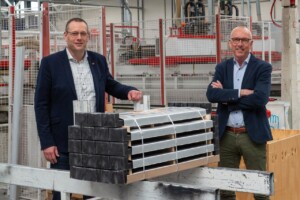 Für dieses Jubiläum haben wir einige Projekte aus dem Jahr 1998 besucht, und die Schwelle sieht auch nach 25 Jahren noch nahezu wie neu aus. Das Brechen, Mahlen und Sortieren nach Farbe (Premax ist durchgefärbt) ist technisch möglich. Sollte also Zirkularität für Baumaterialien verpflichtend werden, sind wir darauf vorbereitet. Unser aufbereitetes Produkt wird genauso gut funktionieren wie das Original.„ Das Unternehmen prüft auch alternative Bindemittel, um die Verbundsteine in der Umweltbilanz noch höher zu positionieren. Konings betont: „Gussverbundstein und Holz sind die nachhaltigsten Materialien, die in der aktuellen Umweltdiskussion Rückenwind haben.„