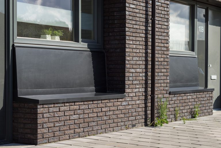 Holonite hat in diesem Projekt die 16 Eigentums-Familienwohnungen mit maßgefertigten Bänken ausgestattet, die vollständig in die Fassade integriert sind. Das Wohngebäude ist dadurch einzigartig und hebt sich von standardmäßigen Einfamilienhäusern ab. Bewohner können so an der Vorderseite ihrer Wohnung einige Sonnenstrahlen genießen oder die Bank als Fensterbank nutzen, um das Straßenbild zu verschönern.
