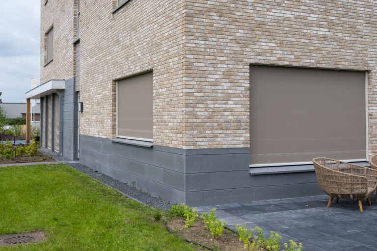 Insgesamt wurden 810 m2 nicht isolierte Holonite Fassadensockel in den Abmessungen 500 x 300 x 20 mm (LxBxT) und 1.000 x 300 x 20 mm (LxBxT) montiert. „Wir haben uns für einen halbsteinigen Verband entschieden, der an einigen Stellen etwas höher hinaufgeführt wird. Dadurch wird der menschliche Maßstab in den Fassaden gewährleistet„, erklärt Groenendijk. „Zudem setzen sich die Fassadensockel harmonisch in der Veranda fort, wodurch auch dieser Gebäudeteil noch mehr Dimension erhält. Der halbsteinige Verband mit abgerundeten Ecken an den Längsseiten erinnert sehr subtil an die facettierte Stuckarbeit von früher, allerdings ohne den damit verbundenen Wartungsaufwand. Die Holonite-Produkte sind nämlich vollständig wartungsfrei. Da auch die Fensterbänke und Mauerabdeckungen (Dachränder) in Holonite ausgeführt wurden, entsteht Einheit und Ruhe. Aber es entsteht auch ein Gebäude, das gut in seine Umgebung passt. Aus dem Viertel haben wir bereits viele begeisterte Reaktionen erhalten dürfen.„