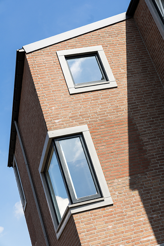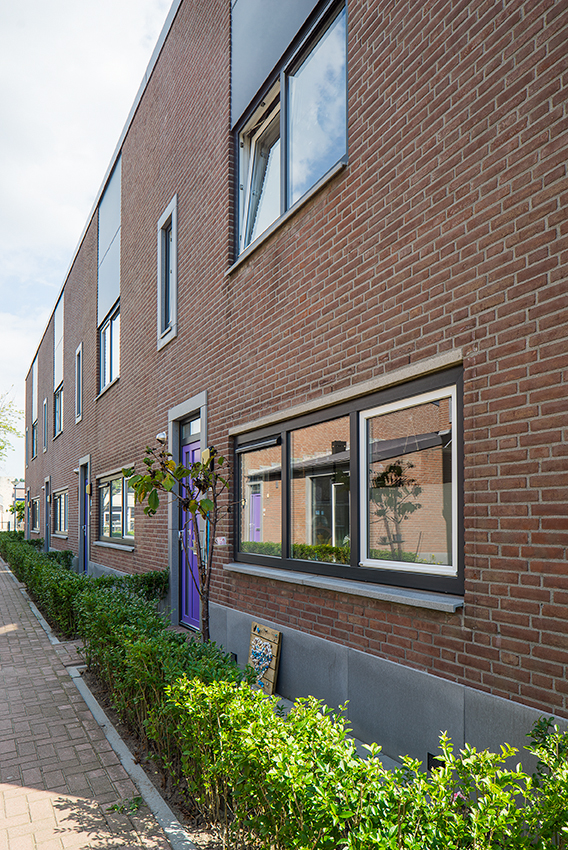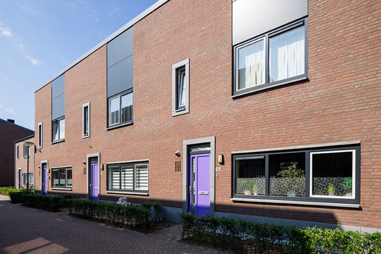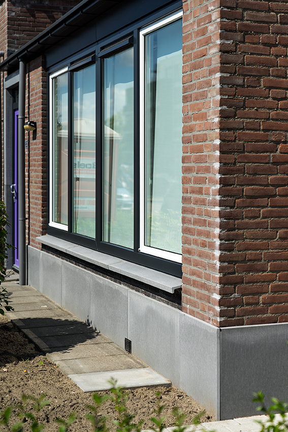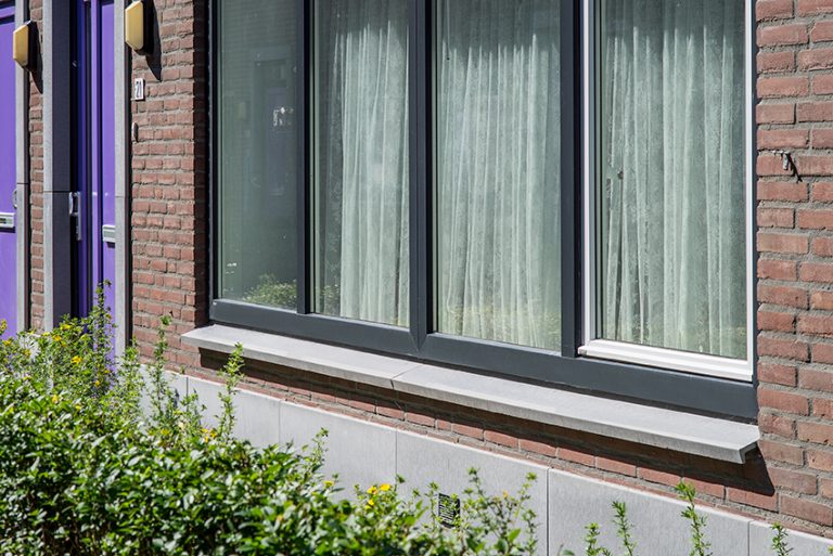 In diesem Renovierungsprojekt wurden unsere Laibungen, Fensterbänke und Fassadensockel zu einem schönen Ganzen verarbeitet. Alle unsere Produkte wurden in der Natura dunkelgrau Farbe hergestellt, was in Kombination mit den auffälligen violetten Haustüren wunderschön zur Geltung kommt. Die Wahl dieser spezifischen Produkte trägt dazu bei, dass das Straßenbild aufgewertet wurde und das Viertel vollständig mit der Zeit Schritt gehalten hat.
