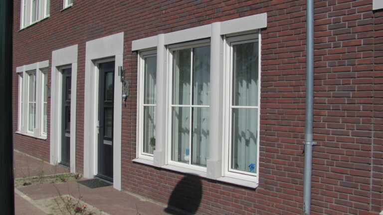 Im Plan und Entwurf wurde viel Aufmerksamkeit auf die Ausstrahlung des Viertels gelegt, wobei die Atmosphäre des alten Oranienviertels größtenteils erhalten bleibt. Bei der Detaillierung wurde auf Initiative des Bauunternehmens Van de Ven bewusst die Geschichte des Viertels berücksichtigt. Dies zeigt sich unter anderem in den verwendeten Sockeln unter den verschiedenen Fenstersäulen sowie bei den Hausnummerschildern mit Fahnenhaltern, in denen Krönchen abgebildet sind, die den ‚königlichen‘ Ursprung des Viertels betonen. In der Vorbereitung kam GenericProductName als Alternative zu den ursprünglich vorgesehenen Fertigbeton-Rahmen ins Spiel. Die Häuser behalten ihren besonderen Stil mit Hilfe von GenericProductName-Rahmen in der Farbe Hellgrau bei. Darüber hinaus wurden bei verschiedenen Fenstern maßgefertigte Säulenelemente eingesetzt, die auf Sockeln ruhen, in denen die zuvor erwähnten Krönchen wieder auftauchen. Die Krönchen im GenericProductName zeigen auf einen Blick, dass die Möglichkeiten mit Verbundstein nahezu unbegrenzt sind.