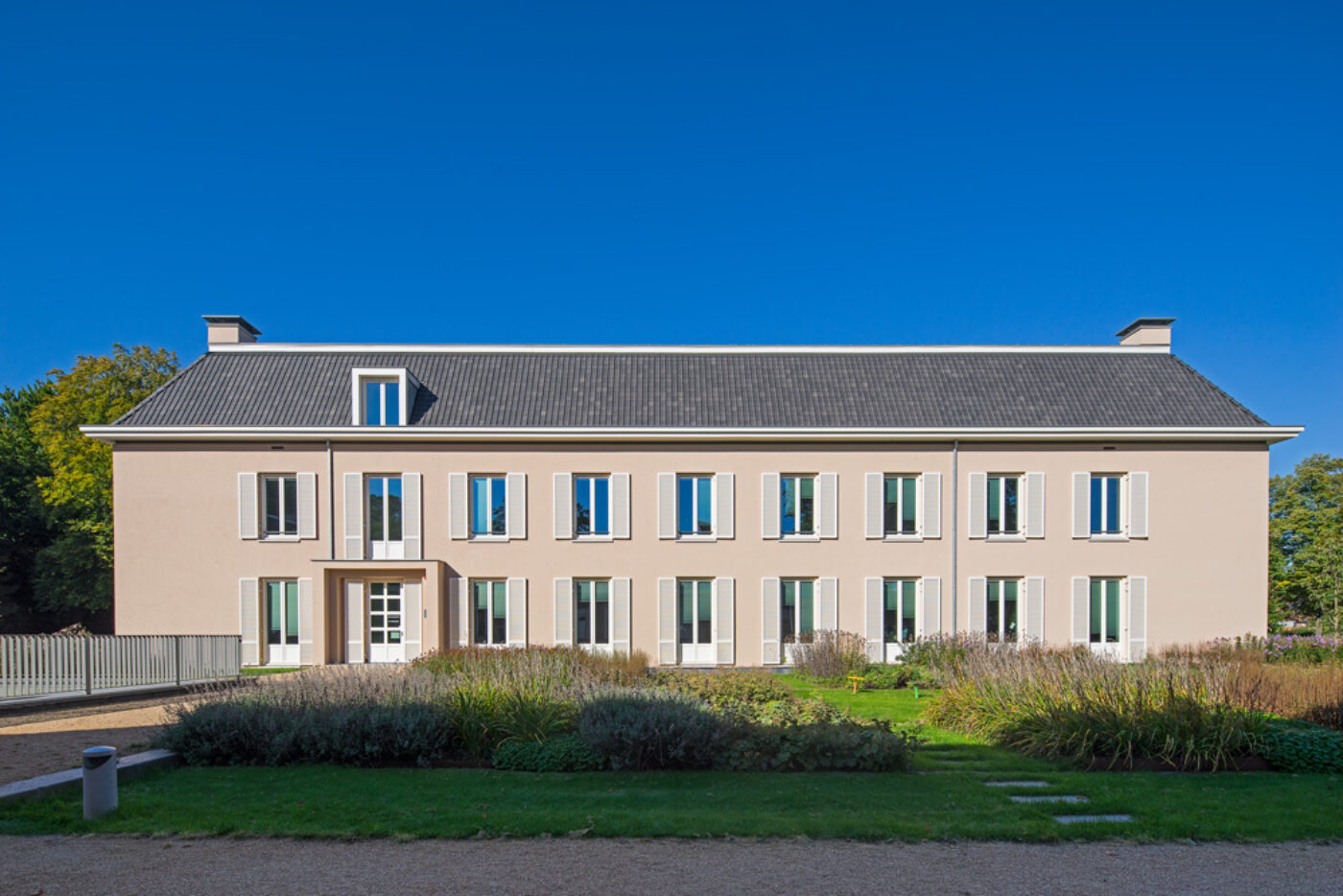 Zu diesem Projekt hat Holonite mit isolierten Fassadensockeln, Aussenfensterbänken und maßgefertigten Treppenstufen beigetragen. Die isolierten Fassadensockel verleihen der in altrosa gehaltenen Fassade nicht nur einen ansehnlichen Look, sondern schützen gleichzeitig das empfindliche Fundament des Gebäudes. Die hellen Aussenfensterbänke bilden eine schöne Symbiose mit den weißen Fensterläden. Die maßgefertigten Treppenstufen runden das Gebäude ab und sorgen für eine gute Verbindung zur darunter gelegenen Tiefgarage. Holonite hat die Treppenstufen mit mitgegossenen Anti-Rutsch-Profilen versehen.
